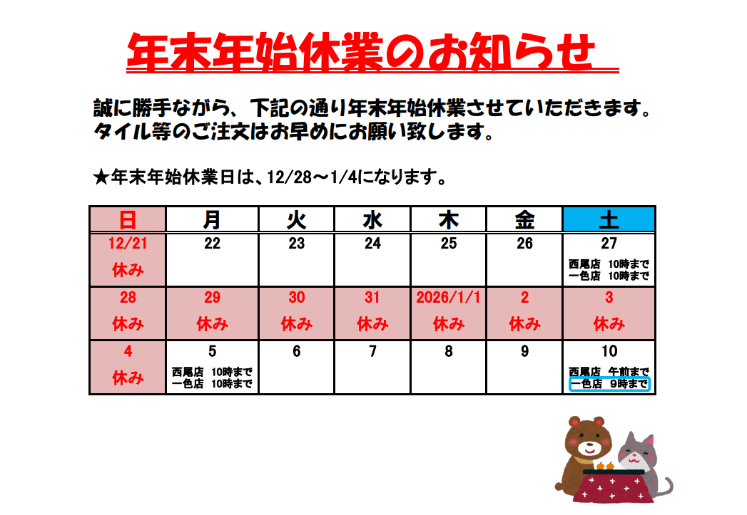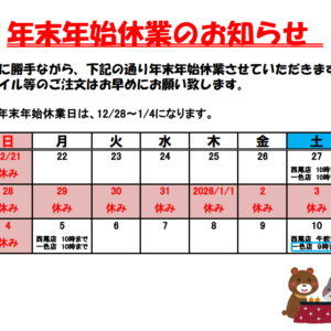 令和7年度 年末年始休業のお知らせ